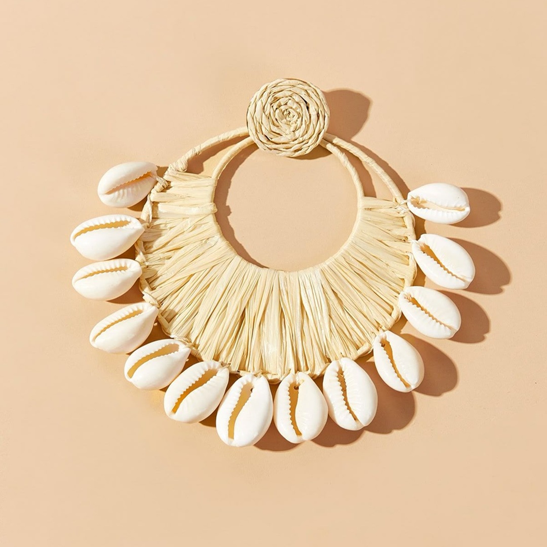 Ce collier pendentif d’inspiration bohème est la pièce maîtresse de votre look estival. Confectionné en raphia naturel tissé et orné d’une frange de véritables coquillages cauris, il apporte une touche authentique et solaire à toutes vos tenues de plage.