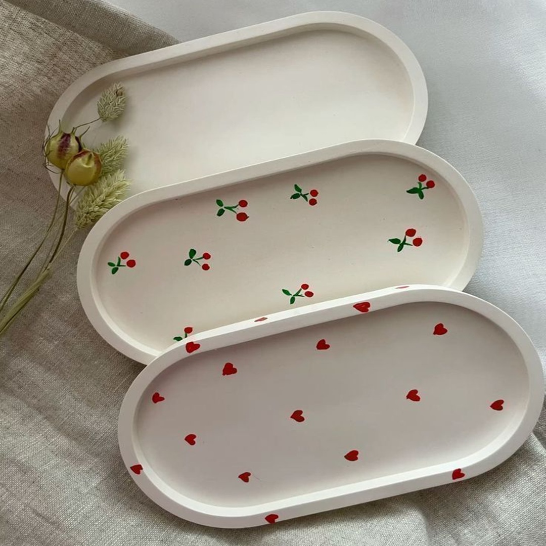 Adorables vide-poches minimalistes, peints à la main avec de jolis motifs cœurs ou cerises pour une touche de douceur dans votre quotidien.