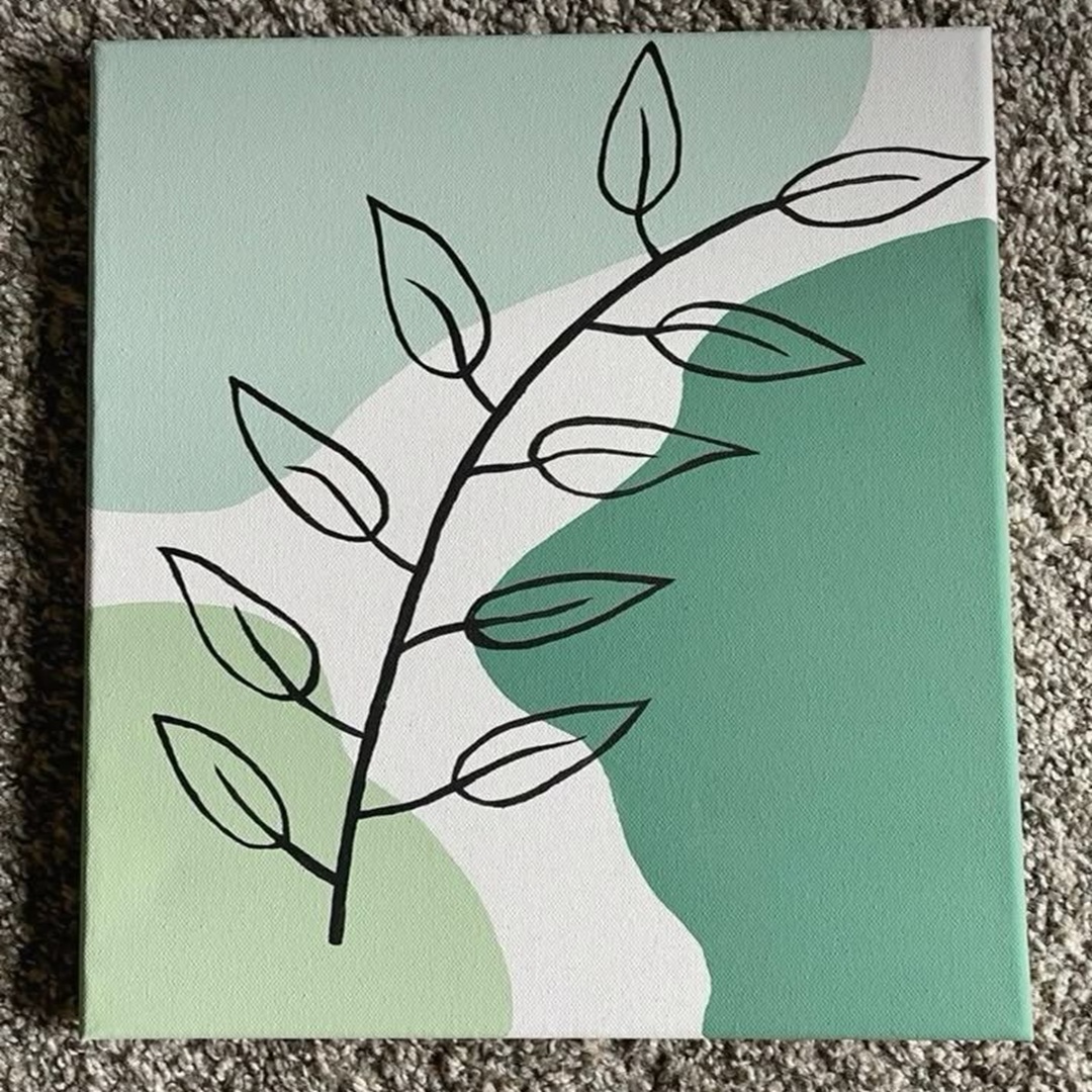 Une toile épurée et apaisante, alliant la douceur des teintes vertes à un dessin botanique minimaliste pour une décoration zen et naturelle.